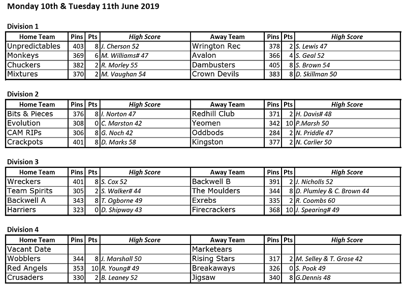 Select button below to download pdf document. Also shown below. See Results Archive Page for previous seasons.